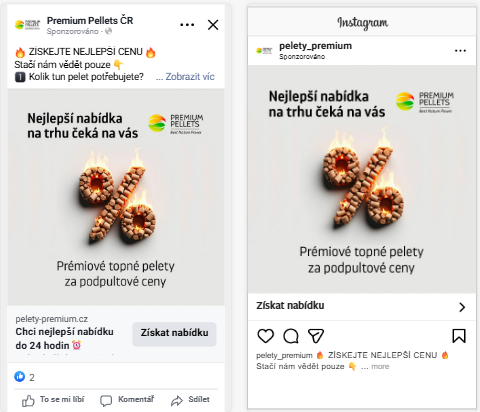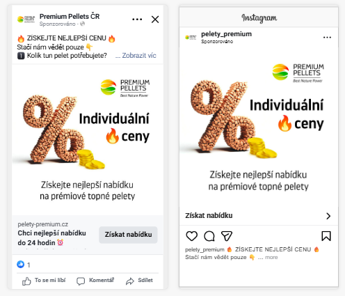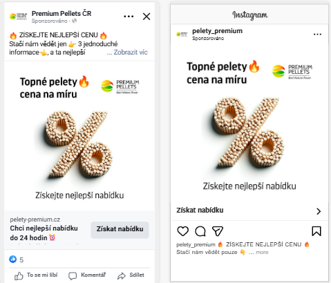 - prostřednictvím leadové kampaně na Facebooku, která měla za cíl přivádět relevantní zájemce o pelety na webové stránky. Tam byl k vyplnění poptávkový formulář.